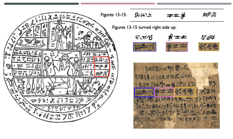 The first problem is noted by independent researcher Tim Barker. Barker directly targeted Heward and Tanner's journal publication and presented findings at the 2020 FAIR Conference that contradict their theory. In particular, Barker noted that the same characters from JSP XI show up in Facsimile 2 of the Book of Abraham. The original papyrus that contained Facsimile 2 was likely damaged upon arrival to Kirtland in 1835 when Michael Chandler sold it to Joseph Smith. A sketch of the original papyrus (but, unfortunately, not the original papyrus) survives today.