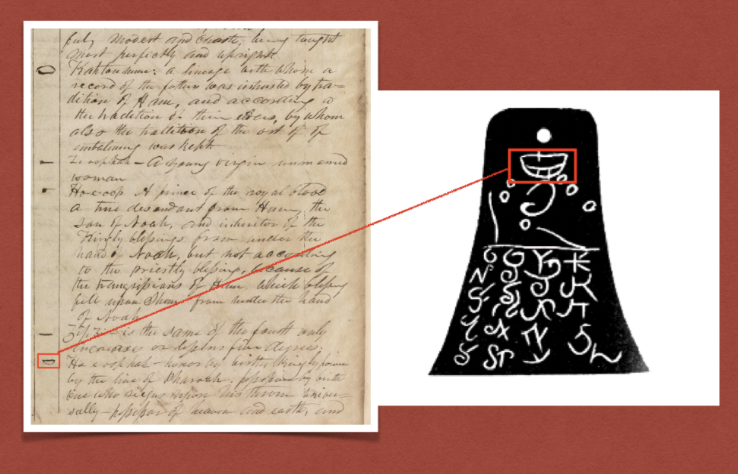 A second source is the GAEL itself and Joseph's use of it when doing his one-character "translation" of the Kinderhook Plates. As Latter-day Saint historians Don Bradley and Mark Ashurst McGee have observed in their definitive treatment of the Kinderhook plates, "[Joseph] Smith’s autonomous use of the Egyptian Alphabet book...in the translation of the Kinderhook plates shows that he considered it a legitimate translation tool."[15] Though, recall that the GAEL appears to be part of the much larger project of recovering the Adamic language. Joseph Smith likely thought that the GAEL had some value in translation; but not for Egyptian per se and, as is more likely, for the remnants of Adamic that Joseph believe might be found in Egyptian and other languages like Hebrew. Joseph Smith's one character, cursory comparison of the GAEL to the Kinderhook Plates does not establish the notion that he claimed to have knowledge of how to translate the Egyptian language.