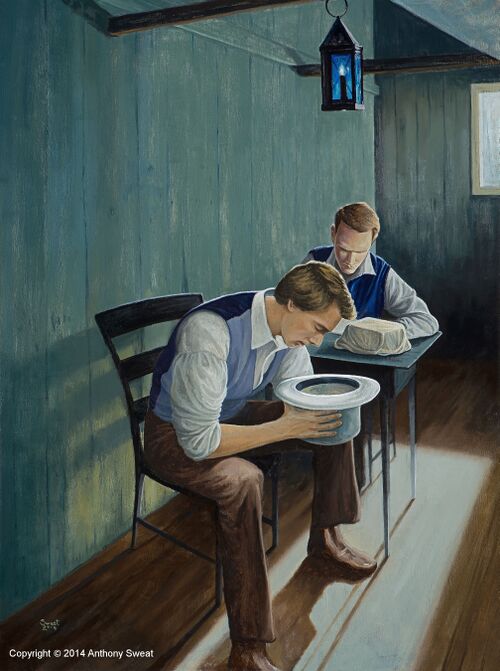 O detalhe do chapéu causa problemas para a teoria crítica que Joseph enganava com notas, enquanto ditava. Com uma cortina no lugar, é muito mais fácil postular que Joseph usado notas ou uma Bíblia no processo de tradução. Com a pedra e o chapéu, no entanto, as testemunhas foram capazes de visualizar todo o processo, destacando, assim, a total ausência de notas ou de uma Bíblia no processo de tradução. Note também que na pintura de Parson, com a sua configuração aberta, a teoria das notas-fraude não pode obter qualquer tração.
