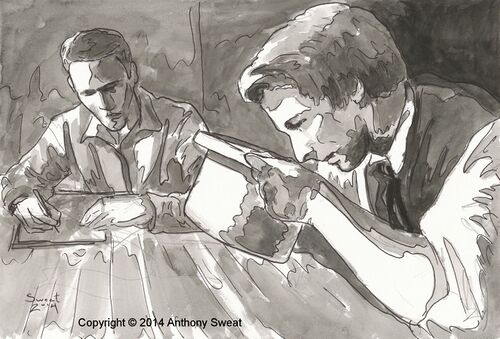 Aqui está um exemplo: A visão tradicional de Joseph Smith tradução do Livro de Mórmon. Agora, há várias coisas erradas com ele, e ele aponta para esse tipo de coisa e diz que este é o engano Igreja. Joseph não tinha as placas com ele muitas vezes, e aqui está a seguir junto com o texto nas placas. Bem, você sabe que não é verdade, porque as testemunhas não viram as placas todo o tempo, certo? Este não pode, possivelmente, ser verdadeira. Quando as testemunhas viram as placas que foi um grande negócio para eles, porque, Joseph não estava ali, sentado traduzindo com as placas na frente dele o tempo todo como as pessoas vagavam em volta e assim por diante. Mas [o autor da Carta a um Diretor SEI] diz: "olha, a Igreja está sendo enganoso", porque ele não mostra Joseph com o rosto no chapéu usando as pedras de vidente. Bem, a minha resposta a esta parte seria "O que no mundo que você está pensando?" Tentar derivar doutrina de ilustrações? Ou esperando que as ilustrações estão indo para lhe dar a imagem fiel? Aqui está outra: Há Joseph tem a cortina entre ele eo escriba .... Este é igualmente errado. Não é um sinal de intenção conspiratório mal ou deliberada. É apenas uma indicação de que os ilustradores muitas vezes simplesmente não obtê-lo direito.