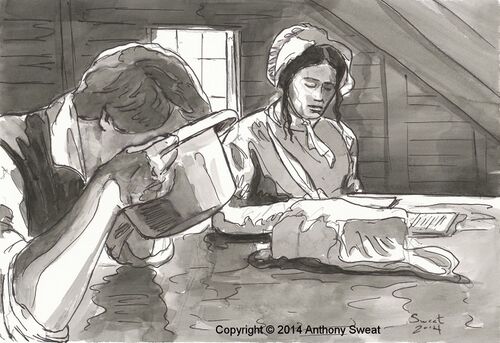 Depois de voltar de uma viagem a Palmyra para resolver seus assuntos, Martin começou a transcrever. A partir de 12 abril - 14 junho, Joseph traduziu enquanto Martin escreveu, com apenas uma cortina entre eles. Na ocasião eles levaram breaks da árdua tarefa, às vezes indo para o rio e atirando pedras. Uma vez que Martin encontrou uma rocha que assemelha-se de perto a seerstone Joseph às vezes usado no lugar dos intérpretes e substituído-lo sem o conhecimento do Profeta. Quando a tradução recomeçou, Joseph parou por um longo tempo e então exclamou: "Martin, o que é o assunto, tudo é tão escuro como o Egito. "Martin, em seguida, confessou que desejava" parar a boca dos loucos "que lhe disseram que o Profeta memorizado frases e simplesmente repetiu-los." —Kenneth W. Godfrey, "A New Prophet and a New Scripture: The Coming Forth of the Book of Mormon," Ensign (Jan 1988).