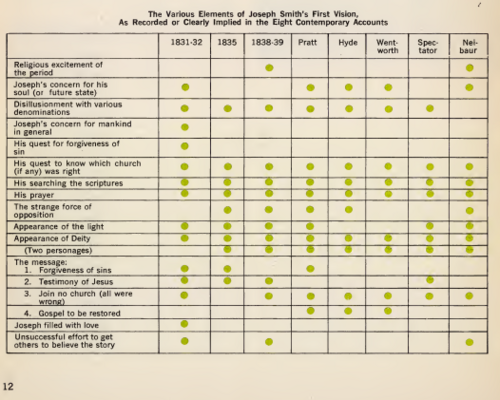 On page 12 of this official publication, all known accounts of the First Vision were compared in an easy-to-understand chart, demonstrating that the author and the Church did not think they had anything to hide:
